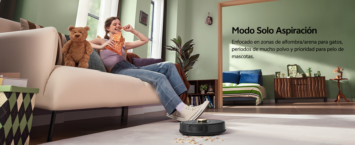 Función especial: Aspiración y Fregado 2 en 1,Control de succión variable, Anticolisión, Navegación lógica, Mapeo inteligente, Anticaídas.